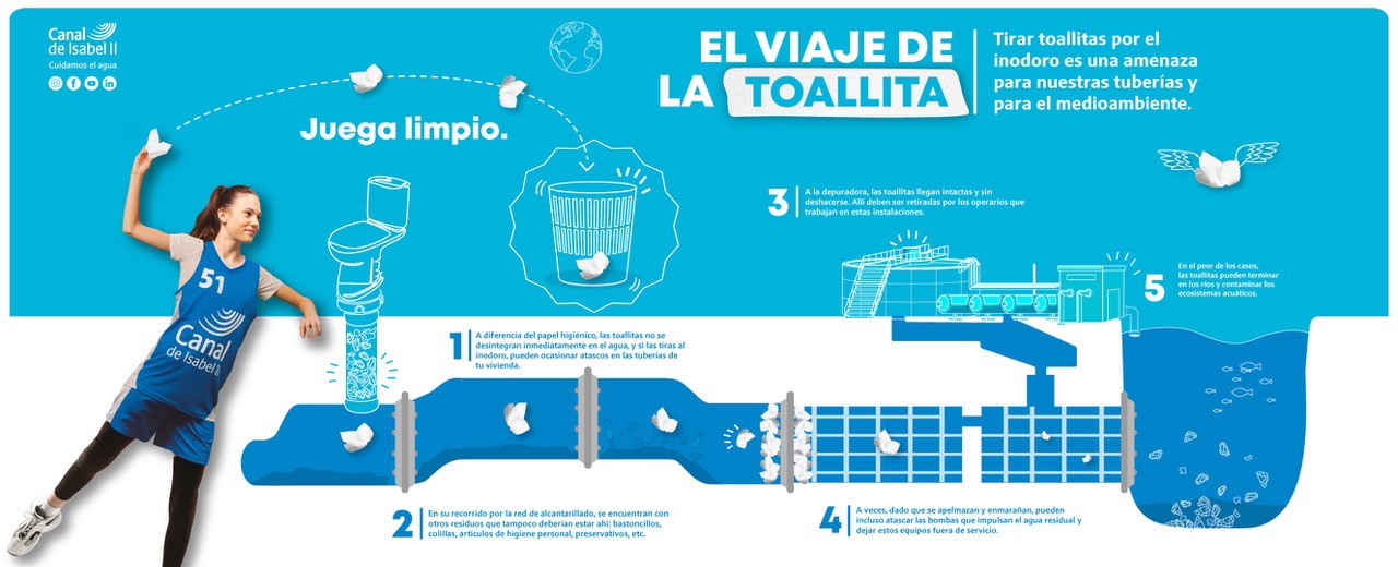 Isabel knows the consequences of flushing waste down the toilet and knows that the solution is in her hands: to empty the wipes in the bin. Join our team to take care of water and the environment.